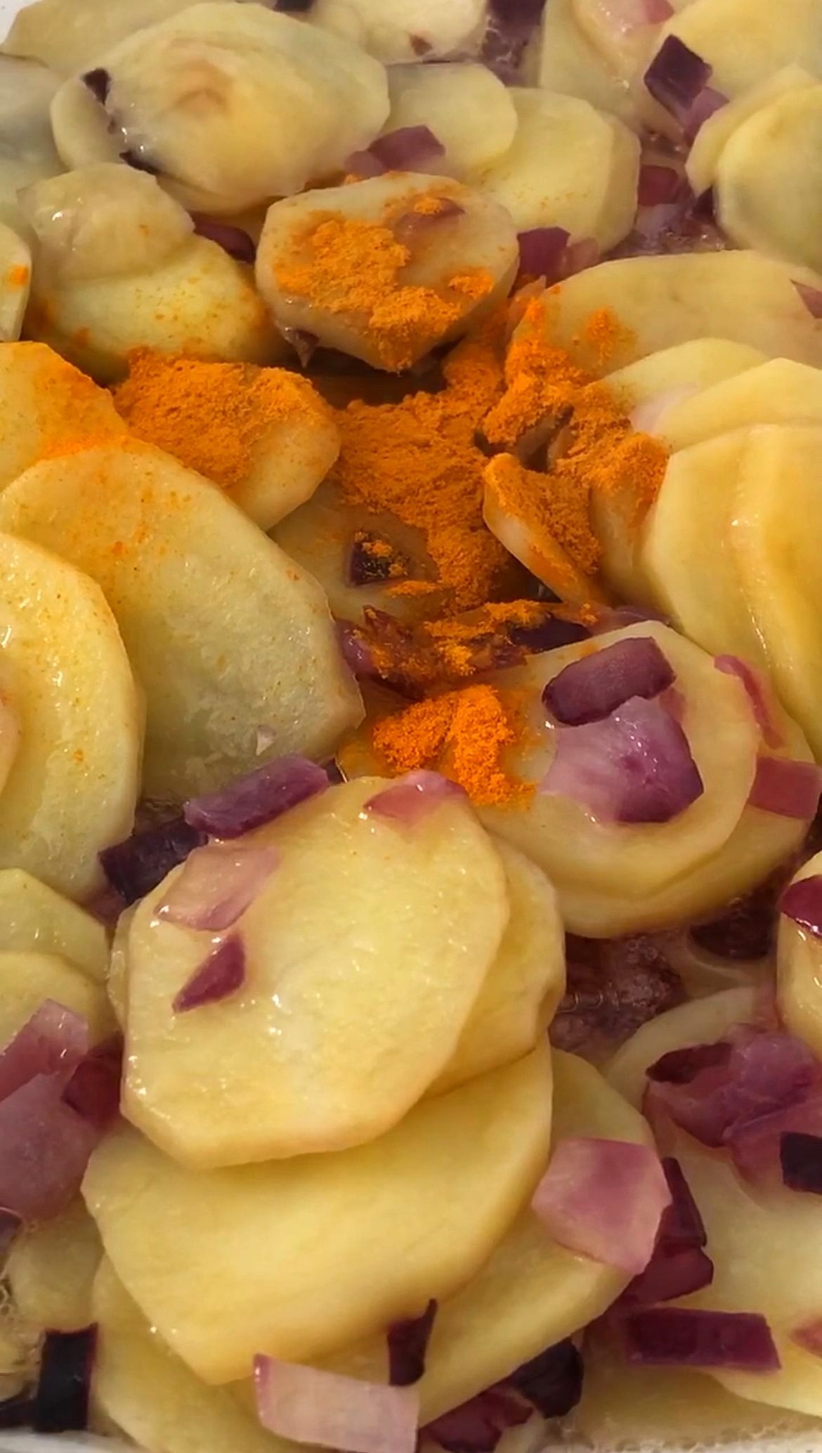 - Würzen: Kurkuma und schwarzen Pfeffer hinzufügen und kurz mit den Kartoffeln in der Pfanne rösten, damit sich die Gewürze entfalten.