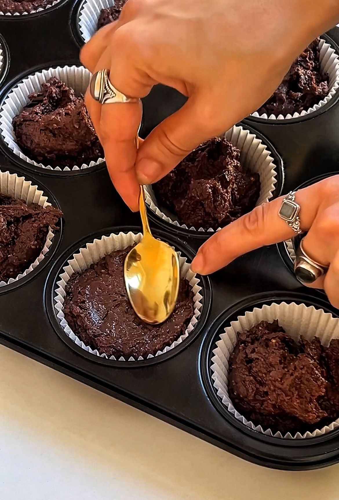 - Indent the centers: Once the brownies are out of the oven, use a small spoon to create an indentation in the center of each brownie while they are still warm.