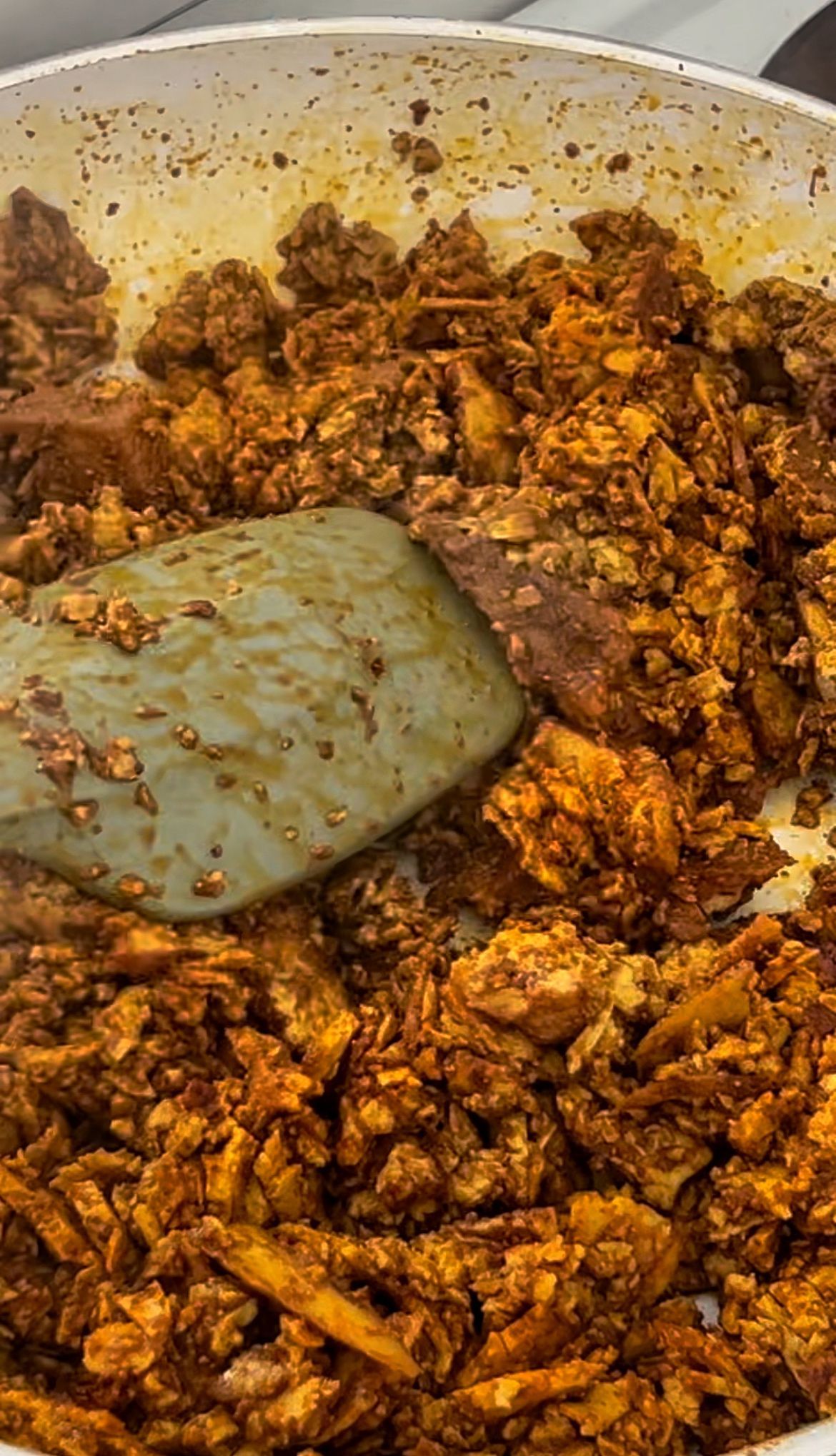 1. Prepare the tofu: Grate both blocks of tofu finely using a grater.