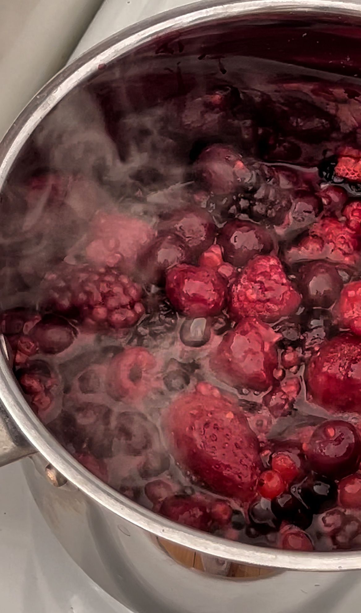 - Heat the berries: Slowly heat the frozen berries in a pan over medium heat until they soften.