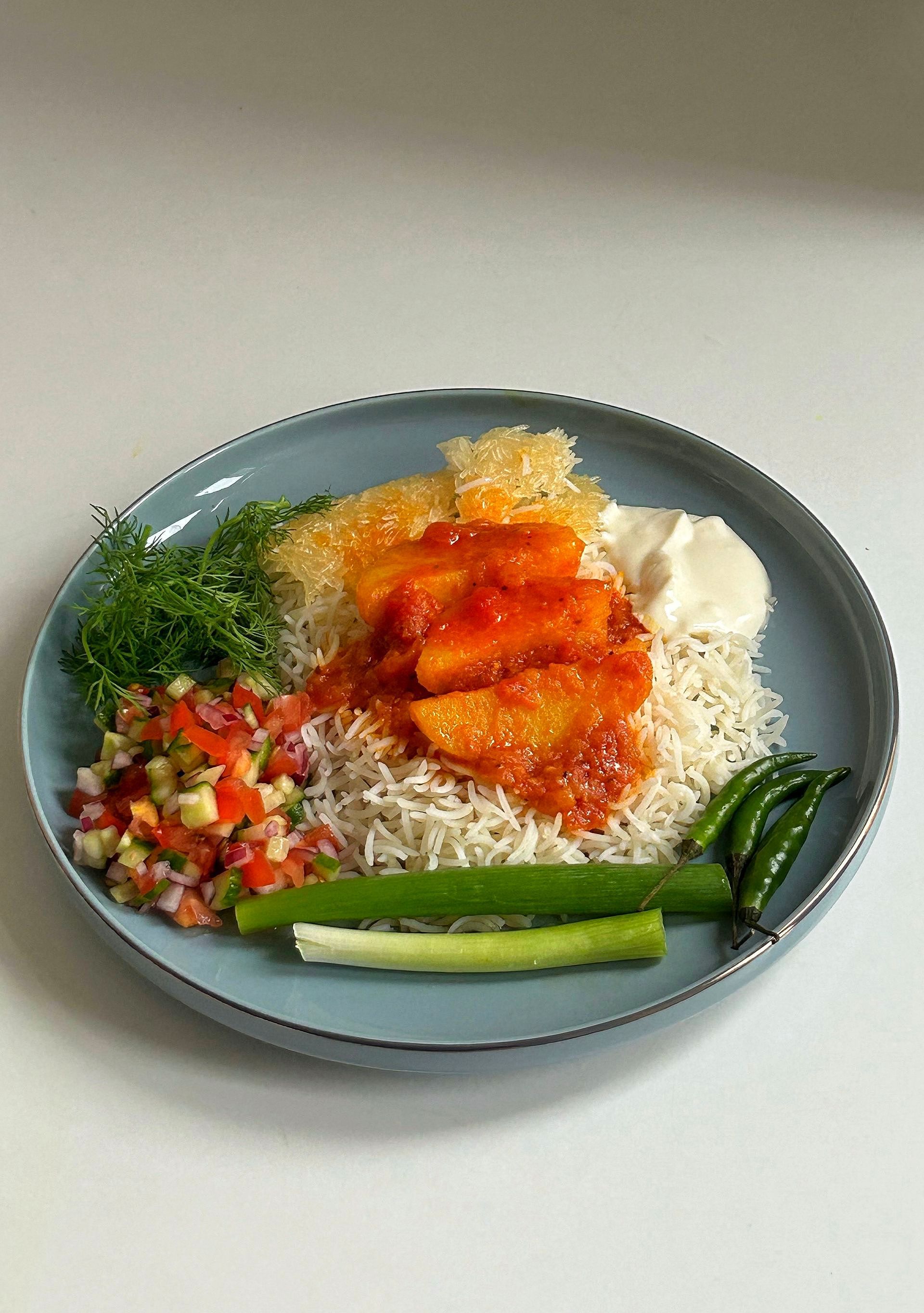 Was dieses Gericht besonders macht, ist seine Einfachheit: Mit nur wenigen Gewürzen und Zutaten entsteht ein unglaublich aromatisches Gericht, das tief in der afghanischen Esskultur verwurzelt ist. Der Clou dabei ist, das Curry bei niedriger Hitze langsam mit einem geschlossenen Topf vor sich hin schmoren zu lassen. Die Aromen entfalten sich am besten, wenn man hier Geduld zeigt. Auch die Kartoffeln nehmen mit der Zeit die würzige Tomatensauce wunderbar auf.