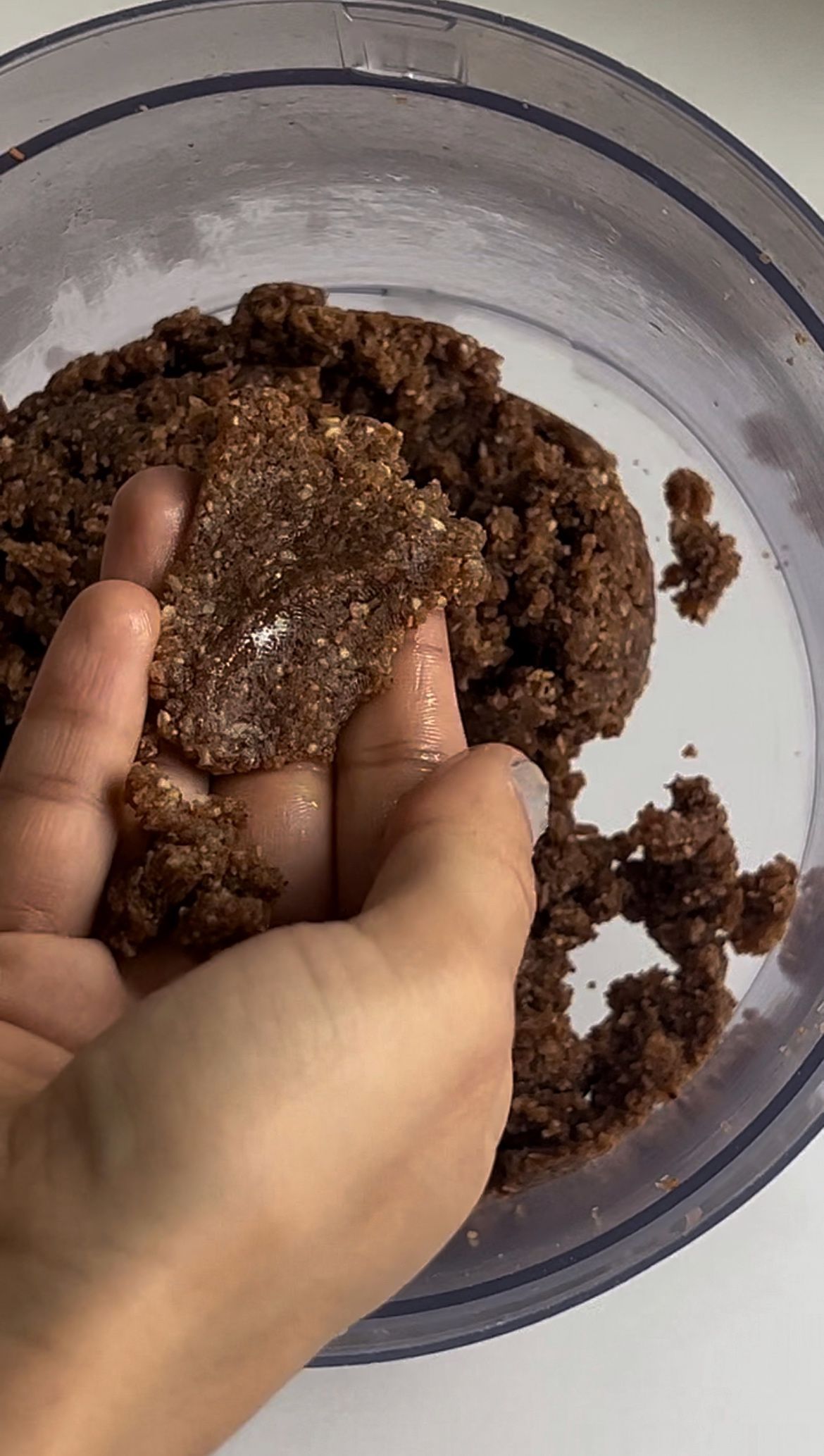 2. Boden zubereiten: Alle Zutaten für den Boden in einen Mixer oder eine Küchenmaschine geben und so lange mixen, bis eine klebrige, formbare Masse entsteht.