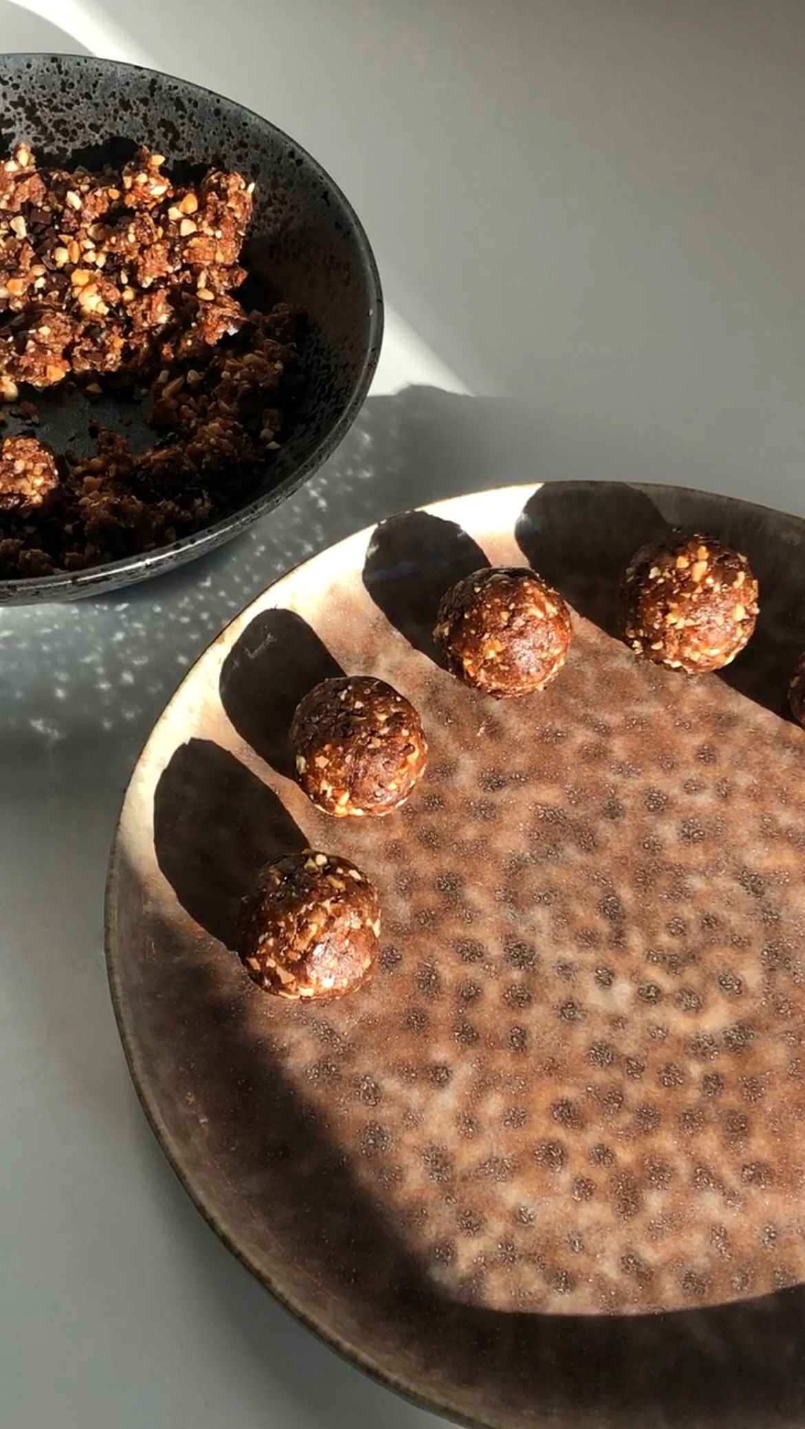 - Formen: Rolle mit den Händen etwa 12 kleine Bällchen. Falls die Masse zu weich ist, stelle sie kurz in den Kühlschrank.